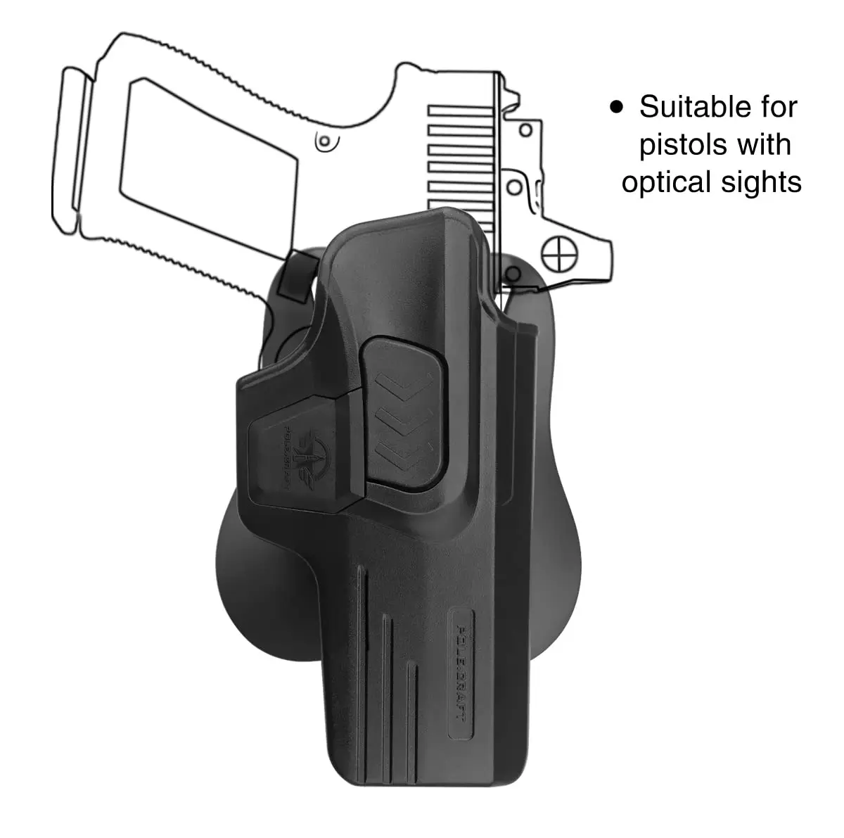 Fits Glock 17 Gen 1 2 3 4 5 (with optic) / Glock 22 31 Gen 1 2 3 4 (with optic) Compatible with Glock 19 19X 25 44 45 Gen 1 2 3 4 5 (with optic) / Glock 23 32 Gen 1 2 3 4 (with optic) - Right Hand (Note: Doesn't fit Glock 22 23 31 32 Gen 5 model)