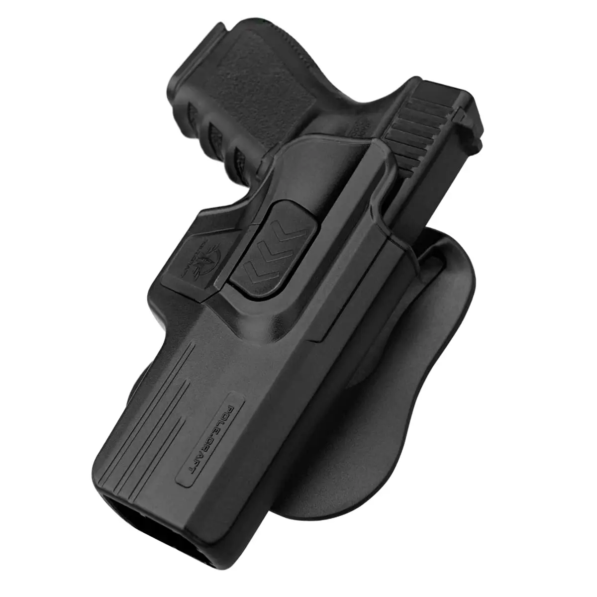 AUTO-Locking: This Glock 19, Glock 19X, Glock 17, Glock 22, Glock 31, Glock 32, Glock 44,Glock 45 holster has an integrated auto-locking mechanism that will automatically lock and hold your firearm safely when you put it back in the gun holster. Effectively prevent guns from falling or being robbed.